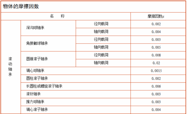 :表中滚动轴承和轧辊轴承的摩擦因数为有润滑情况下的无量纲摩擦因数。